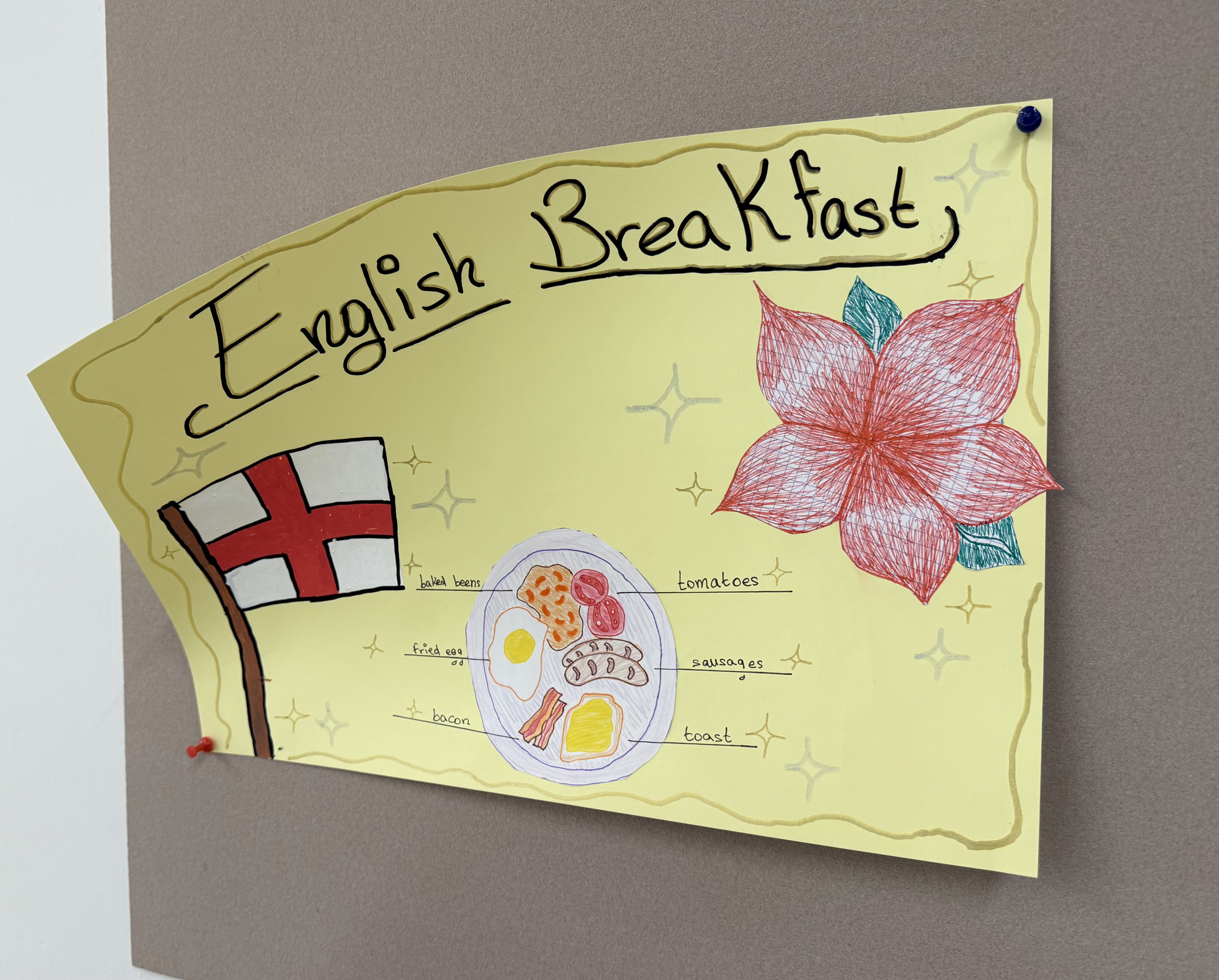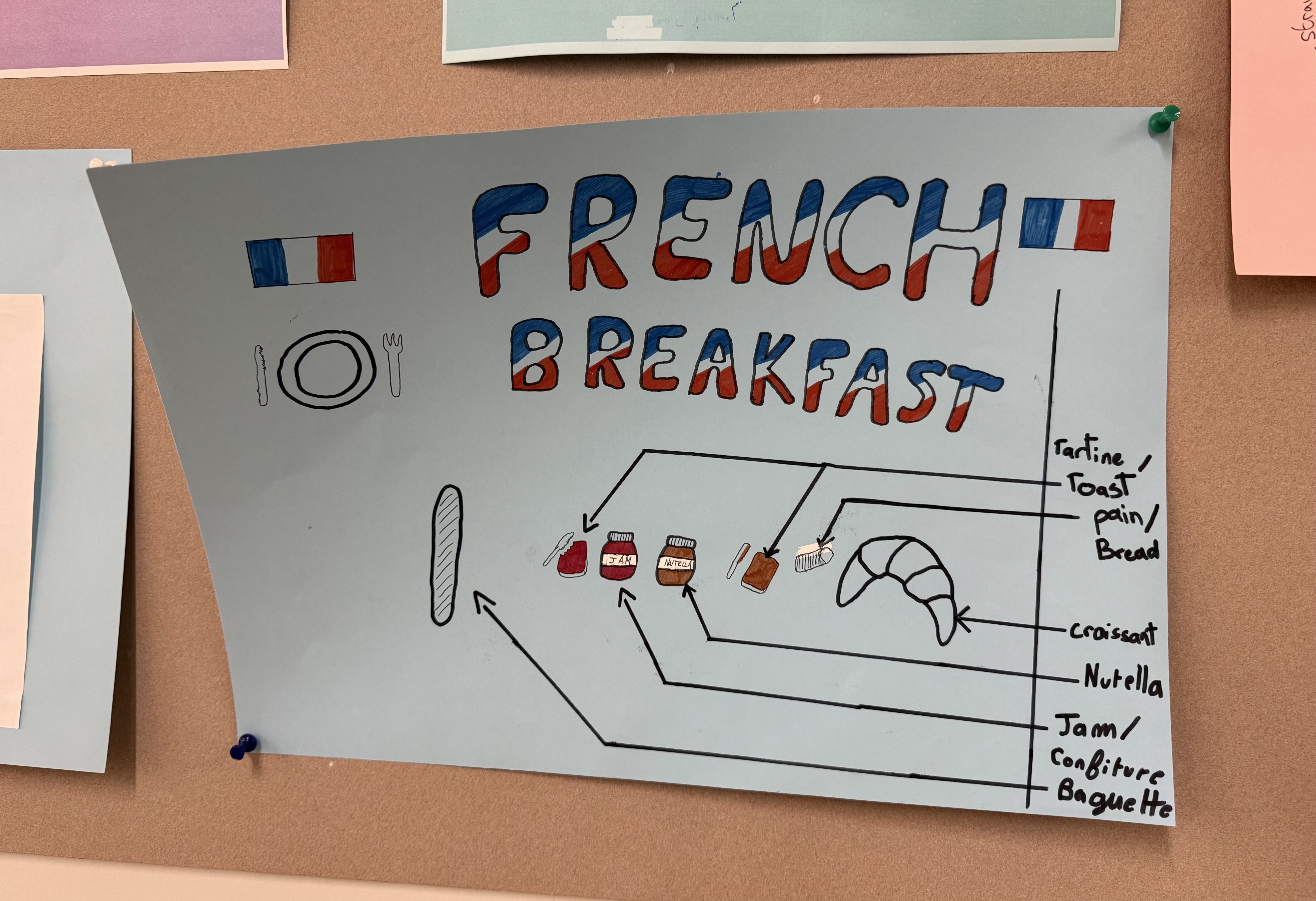 En anglais, les élèves ont également créé des affiches sur les petits-déjeuners dans le monde, ce qui leur a permis de découvrir d’autres habitudes alimentaires.